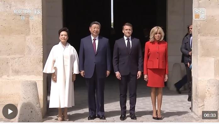 下午,馬克龍總統(tǒng)在榮軍院為習(xí)主席舉行隆重盛大的歡迎儀式。始建于1670年的榮軍院,是法國(guó)重要的歷史建筑,也是該國(guó)的文化地標(biāo)。10年前習(xí)主席首次訪法時(shí),歡迎儀式也是在榮軍院廣場(chǎng)舉行。5年前習(xí)主席訪法時(shí),馬克龍總統(tǒng)在著名的凱旋門舉行了歡迎儀式。