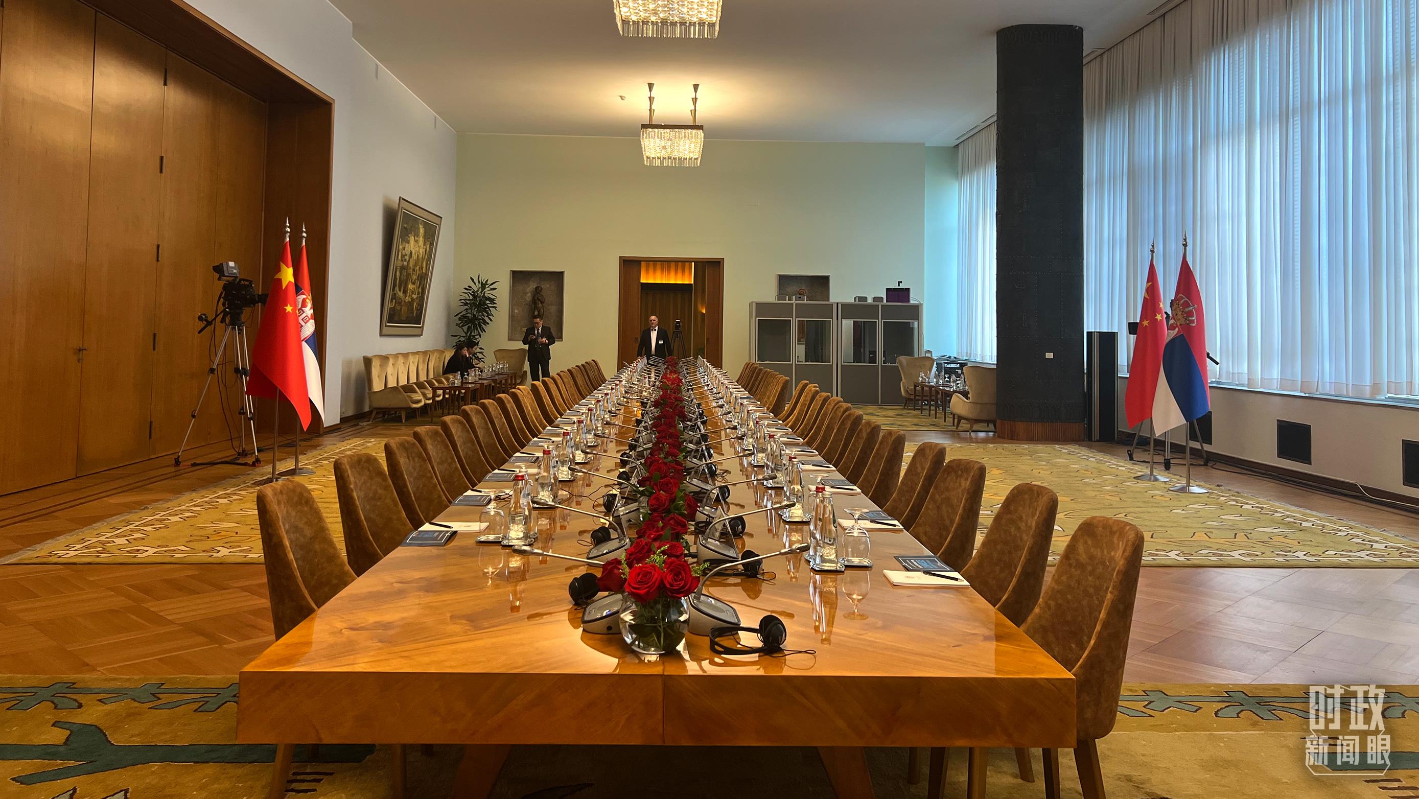 5月8日上午,習(xí)主席同武契奇總統(tǒng)舉行大范圍會談,這是會談開始前的現(xiàn)場。(總臺央視記者張洛嘉拍攝)
