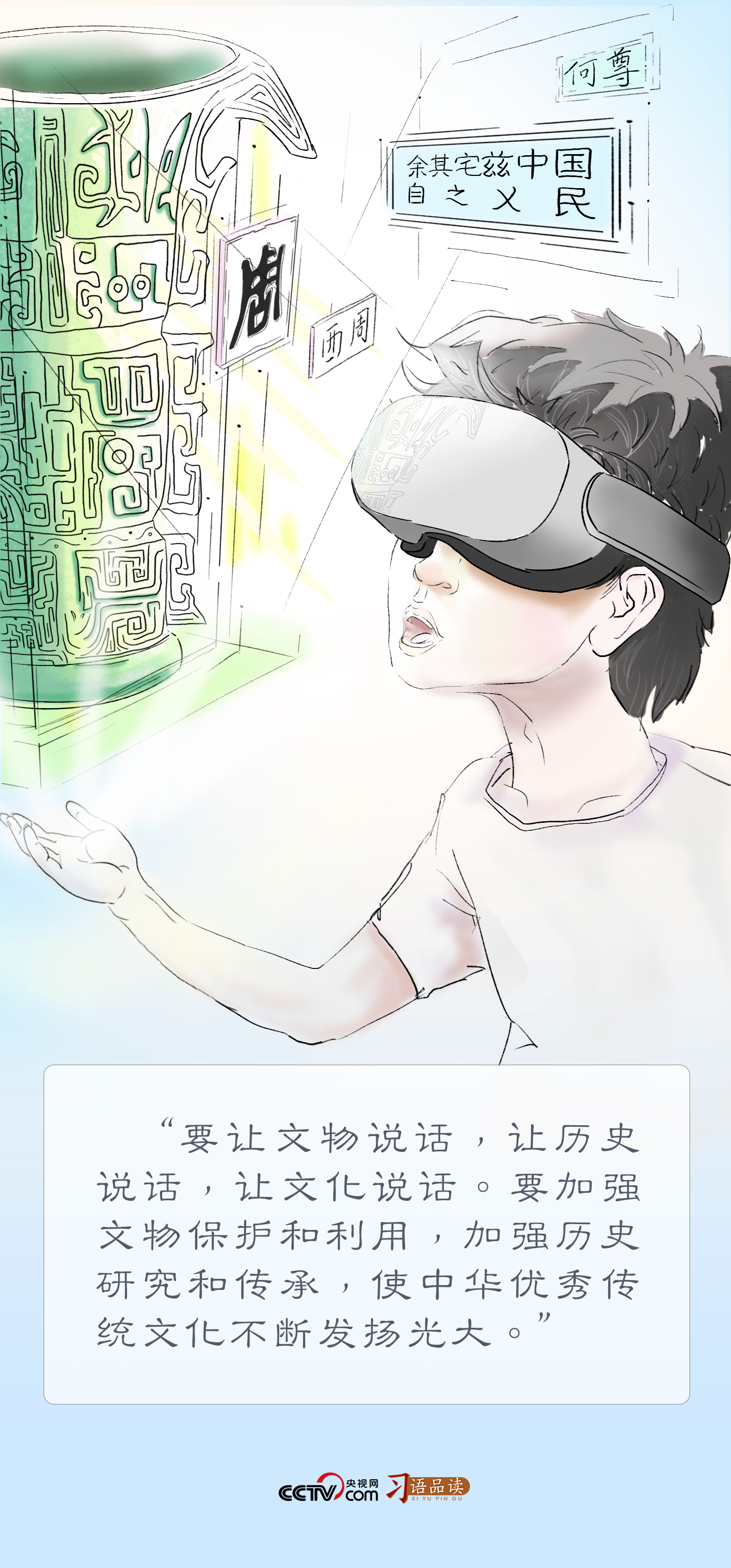 “讓收藏在博物館里的文物、陳列在廣闊大地上的遺產(chǎn)、書寫在古籍里的文字都活起來??倳浻靡粋€“活”字,道出使中華優(yōu)秀傳統(tǒng)文化不斷發(fā)揚光大的方向和目標。