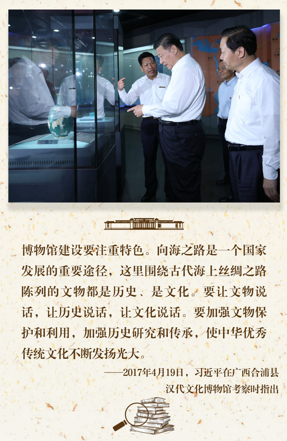 “一個(gè)博物館就是一所大學(xué)?!?。長(zhǎng)期以來(lái),習(xí)近平總書記十分關(guān)心博物館事業(yè)發(fā)展,多次在不同場(chǎng)合對(duì)發(fā)揮好博物館相關(guān)功能提出要求。