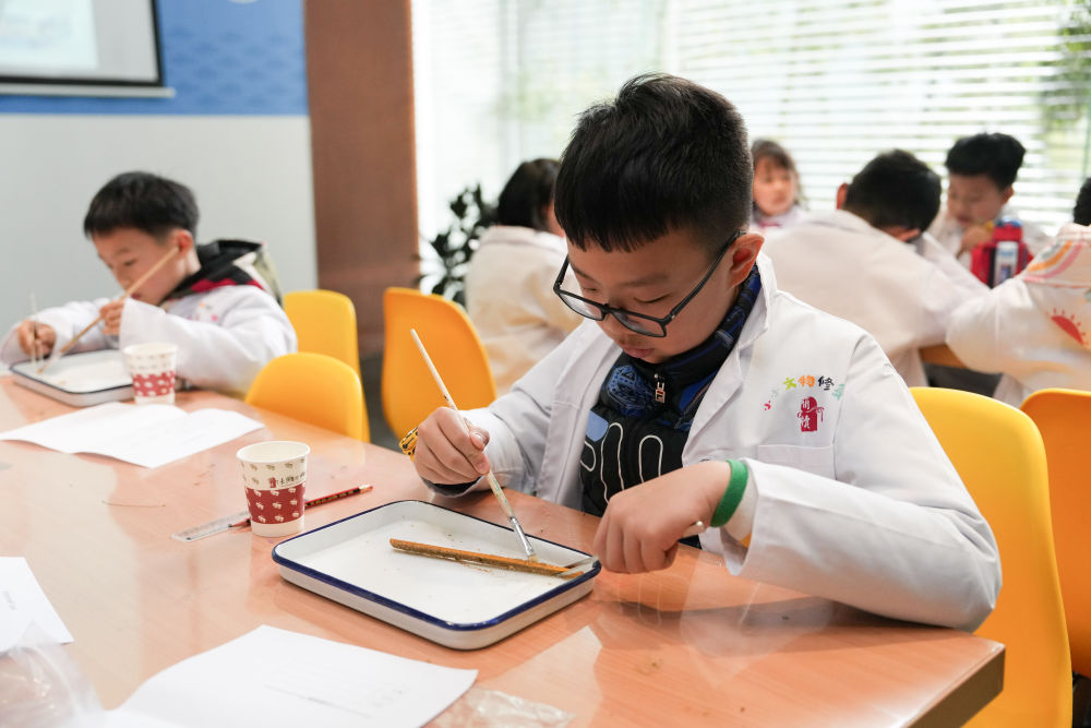 2024年3月16日,孩子們?cè)陂L(zhǎng)沙簡(jiǎn)牘博物館參與社會(huì)教育活動(dòng)“探秘簡(jiǎn)牘的清洗與保護(hù)”。湖南是簡(jiǎn)牘出土大省,長(zhǎng)沙簡(jiǎn)牘博物館推出了系列展陳、社會(huì)教育活動(dòng)等,讓觀眾能走近這跨越千年的“百科全書”。