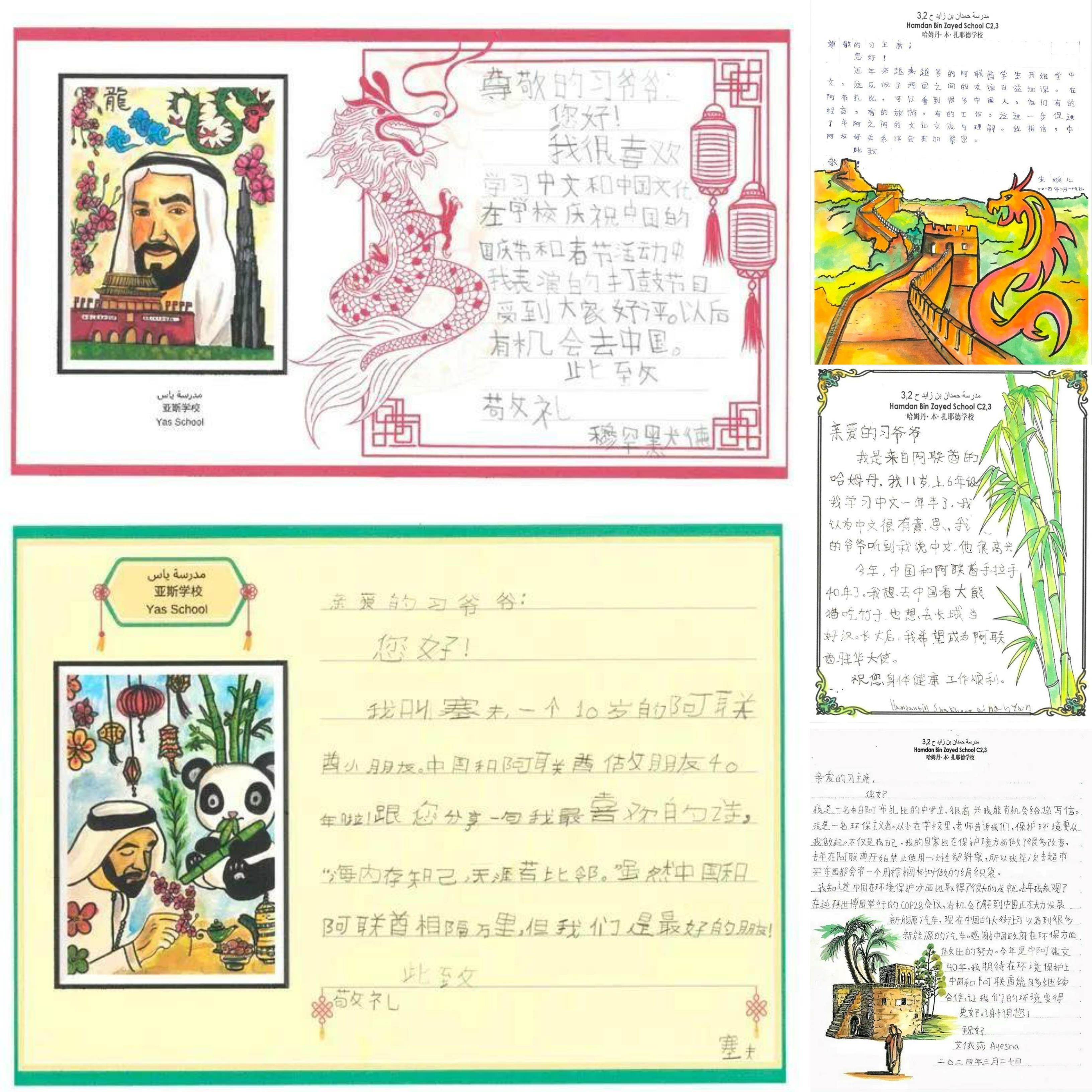 “我讀了你們每個人的信,從字里行間、畫里畫外感受到了大家對中國文化的熱愛,對兩國友好的期盼?!苯?,習近平主席在給他們的復信中說,“5年前,我同穆罕默德總統(tǒng)共同啟動阿聯(lián)酋中文教學‘百校項目’,如今看到‘學中文’在阿聯(lián)酋已經(jīng)成為一種新風尚,培養(yǎng)了一批像你們這樣的中阿交流小使者,我很欣慰。”