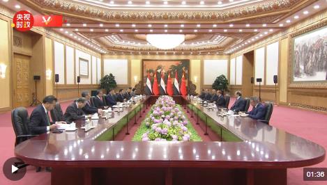 5月29日下午,國家主席習近平在北京人民大會堂同來華出席中國—阿拉伯國家合作論壇第十屆部長級會議開幕式并進行國事訪問的埃及總統(tǒng)塞西舉行會談。
