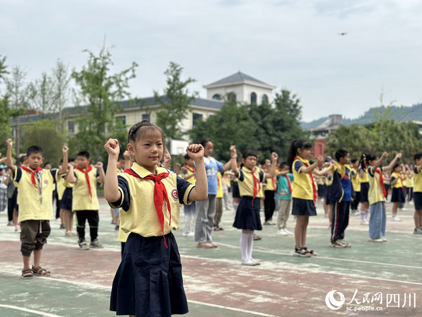 5月31日,南充市嘉陵區(qū)之江小學(xué),學(xué)生們正在進行課間操活動。人民網(wǎng)記者 王波攝