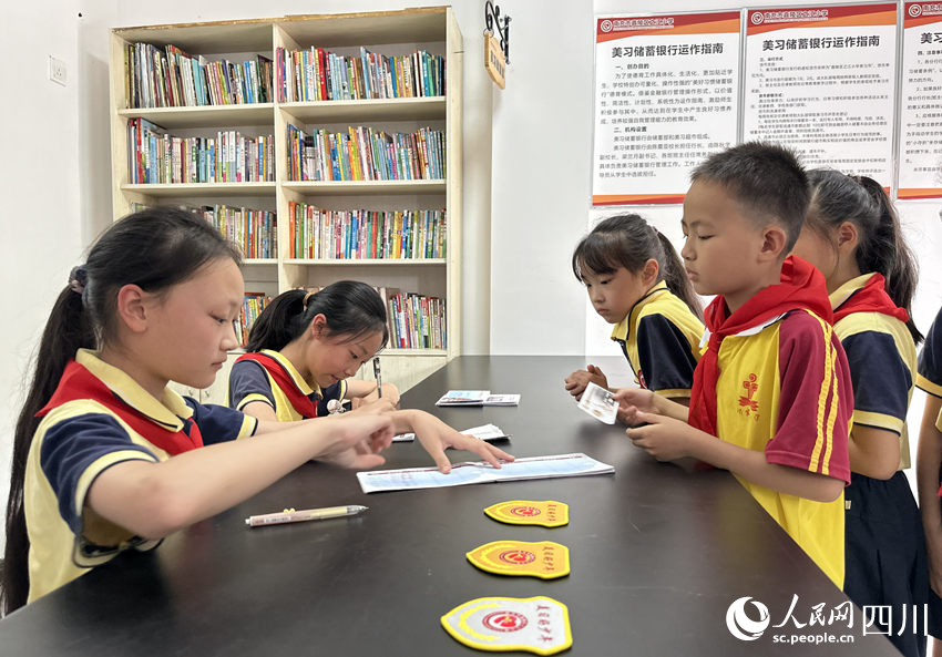 5月31日,南充市嘉陵區(qū)之江小學(xué)“美習銀行”,學(xué)生們在儲存“美習幣”。人民網(wǎng)記者 王波攝