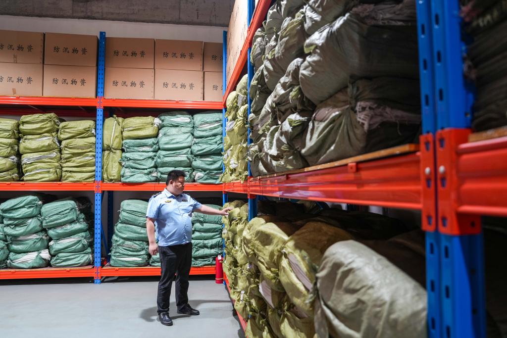 6月18日,在湖南省長沙市天心區(qū)防汛物資倉庫,應(yīng)急管理局工作人員在檢查防汛物資。新華社記者 陳思汗 攝