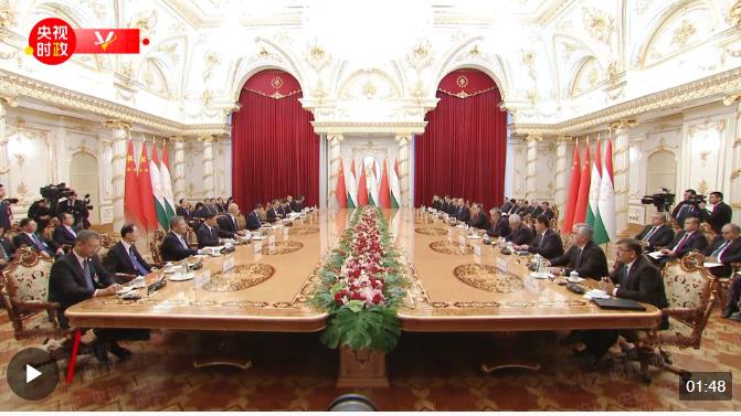 習近平指出,尊敬的拉赫蒙總統(tǒng)先生,我的老朋友,非常高興同你再次會晤。時隔5年再次到訪貴國,我看到了一個更加欣欣向榮的塔吉克斯坦。作為友好鄰邦和全面戰(zhàn)略伙伴,我們?yōu)榇烁械接芍愿吲d。