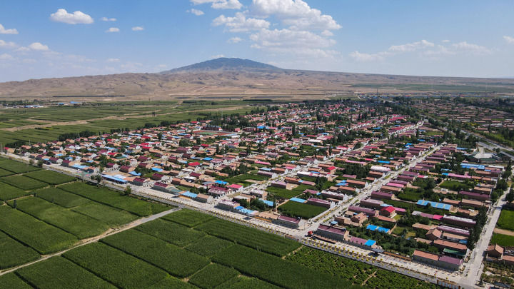 寧夏吳忠市紅寺堡區(qū)柳泉鄉(xiāng)永新村(2021年7月29日攝,無人機(jī)照片)。