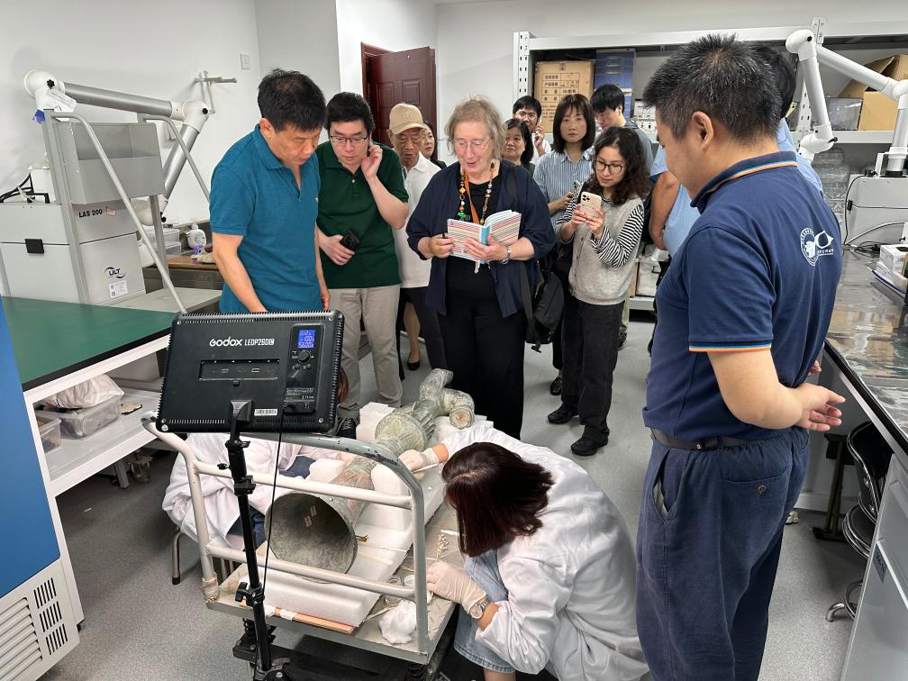 2024年5月28日,英國考古學(xué)家、牛津大學(xué)教授杰西卡·羅森在文物保護(hù)修復(fù)實(shí)驗(yàn)室觀摩文物。新華社發(fā)(四川省文物考古研究院供圖)