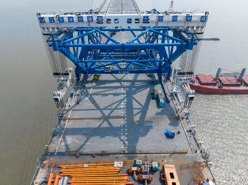 在江蘇,長達1208米的世界最大跨度斜拉橋——常泰長江大橋全橋貫通。建設單位在大橋建設過程中投用了QMD-2000型全球最大噸位橋面吊機,研發(fā)了抗拉強度高達2100兆帕的斜拉索,打造出國內首條鋼桁梁全過程智能生產線……依托5G、大數據、物聯網等信息技術,常泰長江大橋建設還實現了對施工全過程的“可知、可測、可控”。