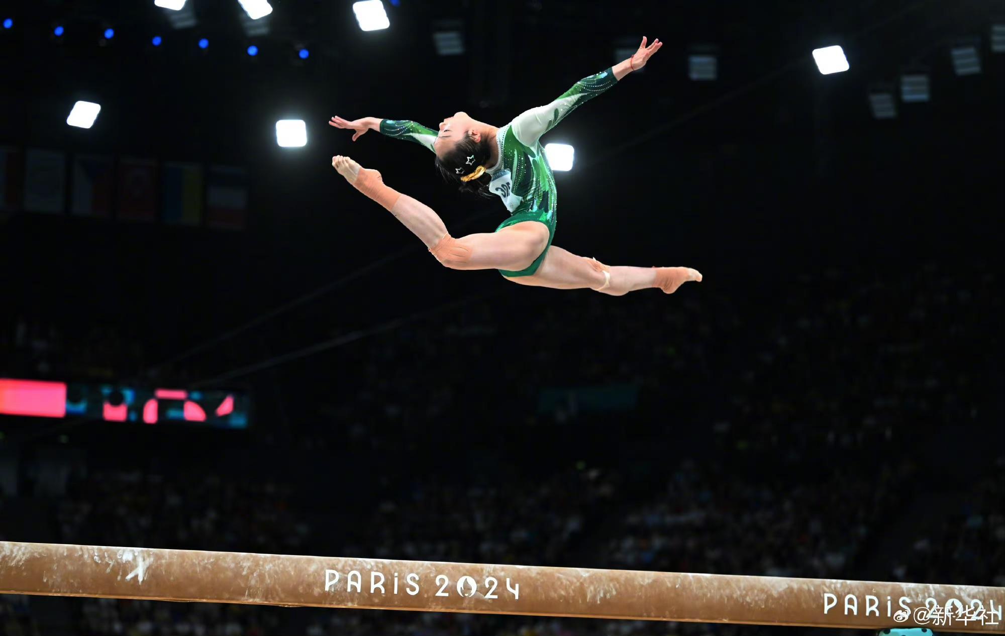 巴黎奧運(yùn)會(huì)體操女子平衡木比賽中,中國(guó)選手周雅琴的靚麗身姿