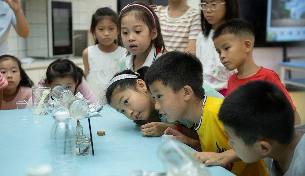 安徽科技館,小朋友觀察海水淡化科學(xué)實驗。