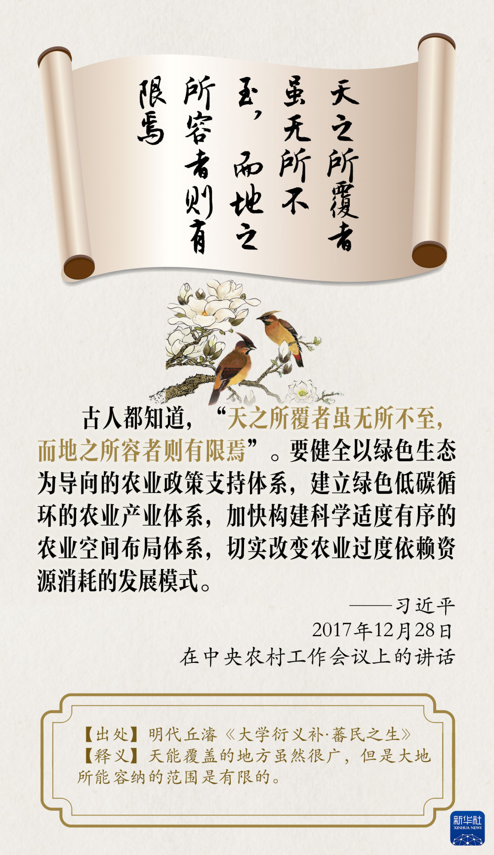 中華民族向來(lái)尊重自然、熱愛(ài)自然,綿延5000多年的中華文明孕育著豐富的生態(tài)文化。習(xí)近平總書(shū)記曾多次引用古語(yǔ)典故闡述生態(tài)文明,讓我們一起品讀,領(lǐng)悟其中的深刻警示和啟迪。