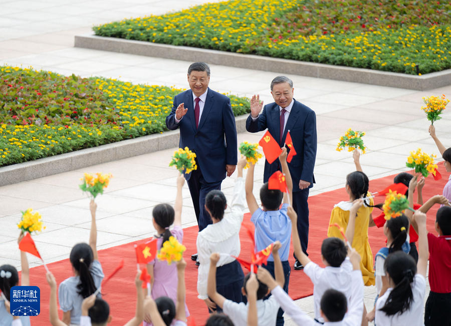 8月19日,中共中央總書記、國家主席習(xí)近平在北京人民大會(huì)堂同來華進(jìn)行國事訪問的越共中央總書記、國家主席蘇林舉行會(huì)談。這是會(huì)談前,習(xí)近平在人民大會(huì)堂東門外廣場(chǎng)為蘇林舉行歡迎儀式。新華社記者 翟健嵐 攝