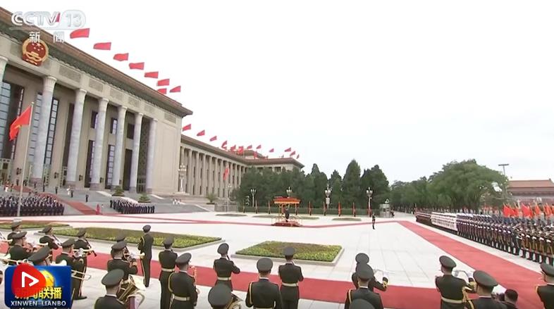 會談前,習(xí)近平和夫人彭麗媛在人民大會堂東門外廣場為蘇林和夫人吳芳璃舉行歡迎儀式。