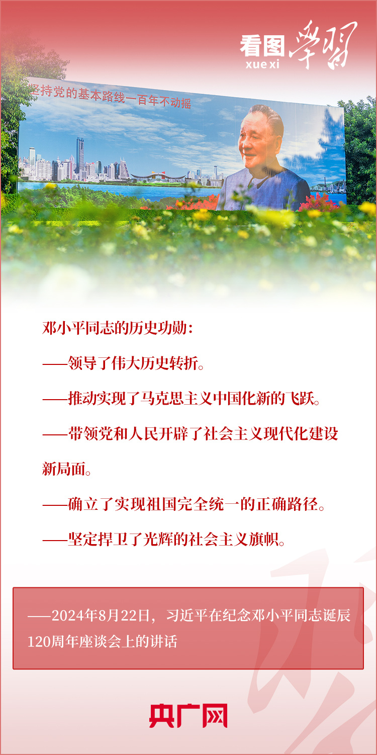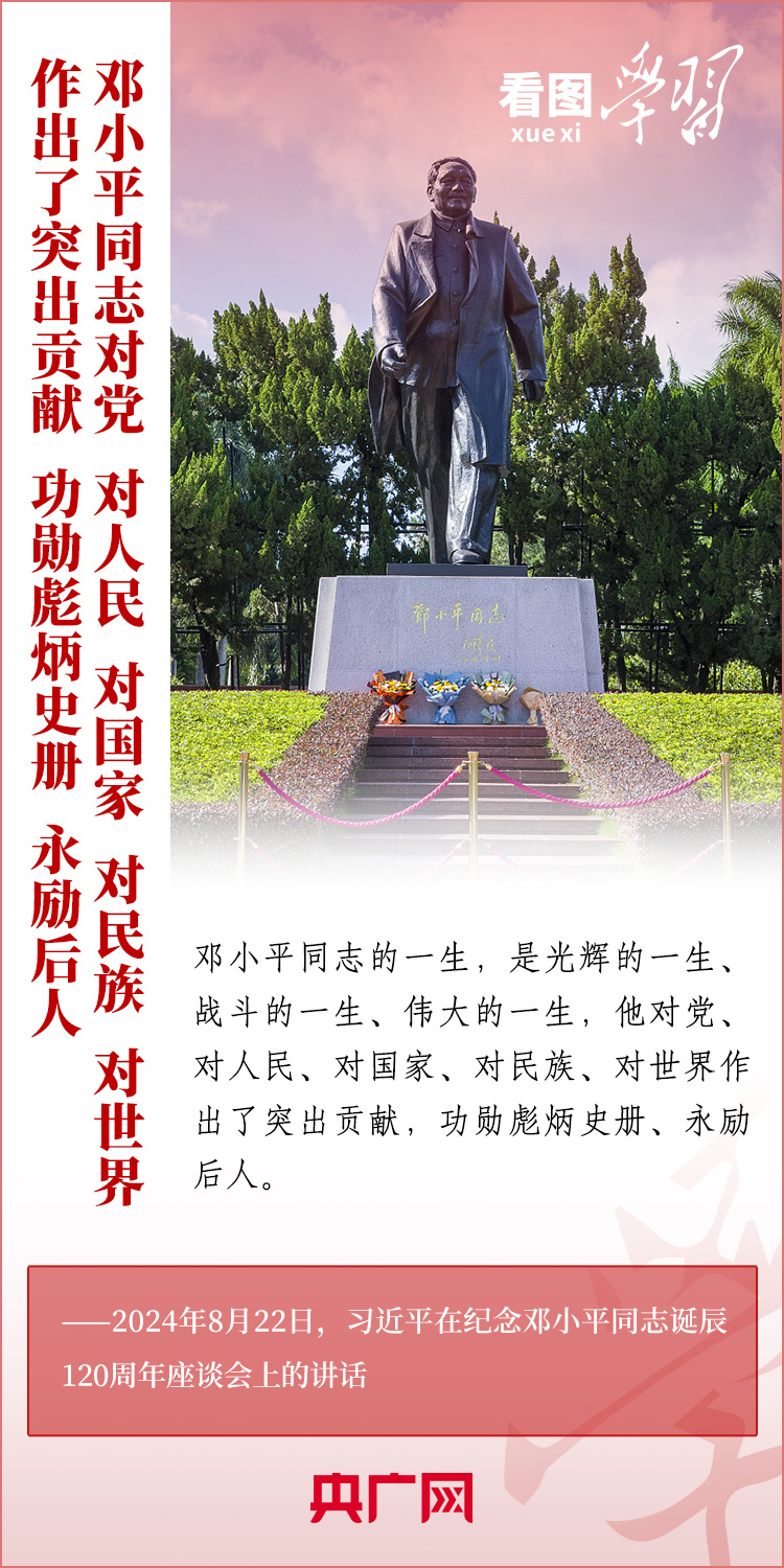 8月22日,習近平總書記在紀念鄧小平同志誕辰120周年座談會上發(fā)表重要講話指出,鄧小平同志的歷史功勛是全方位的、開創(chuàng)性的,對中國和世界的影響是深刻的、長遠的??倳洀娬{,對鄧小平同志最好的紀念,就是把他開創(chuàng)的中國特色社會主義事業(yè)繼續(xù)推向前進。我們要緊緊圍繞以中國式現(xiàn)代化全面推進強國建設、民族復興偉業(yè)這個中心任務,繼往開來,奮發(fā)進取。一起來學習!