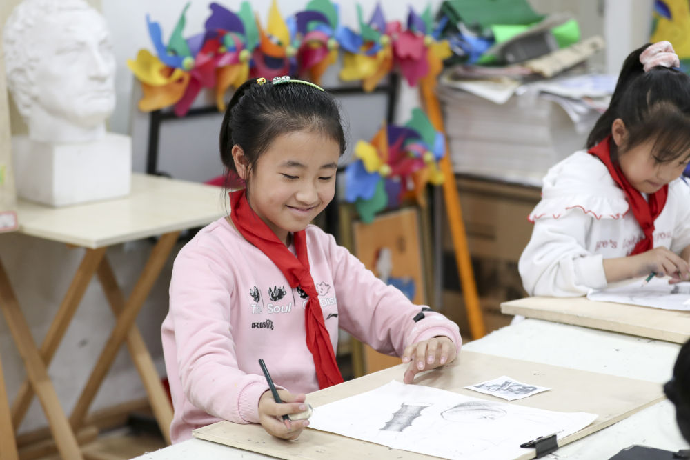 2021年10月27日,學生在黑龍江省哈爾濱市榆樹鎮(zhèn)中心校新鄉(xiāng)小學鄉(xiāng)村學校少年宮參加美術學習班。近年來,黑龍江省各地以鄉(xiāng)村小學為基礎,大力發(fā)展鄉(xiāng)村學校少年宮,開設德育、文藝、體育、科普、手工等多種課外活動,滿足學生需求,培養(yǎng)孩子們的興趣愛好和特長。