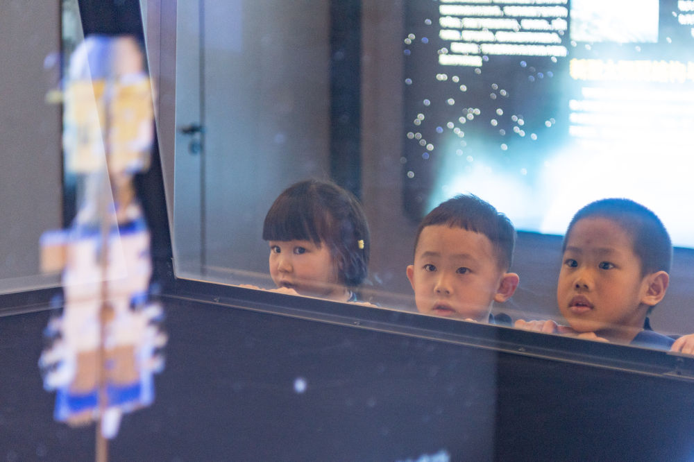 2024年4月24日,小朋友在哈爾濱工業(yè)大學航天館內參觀。航天館是哈爾濱工業(yè)大學重要的教學基地,也是向社會公眾開展航天國防教育、弘揚航天精神的重要場所,被授予首批全國科普教育基地、首批國家航天局航天科普教育基地、全國中小學生研學實踐教育基地等。
