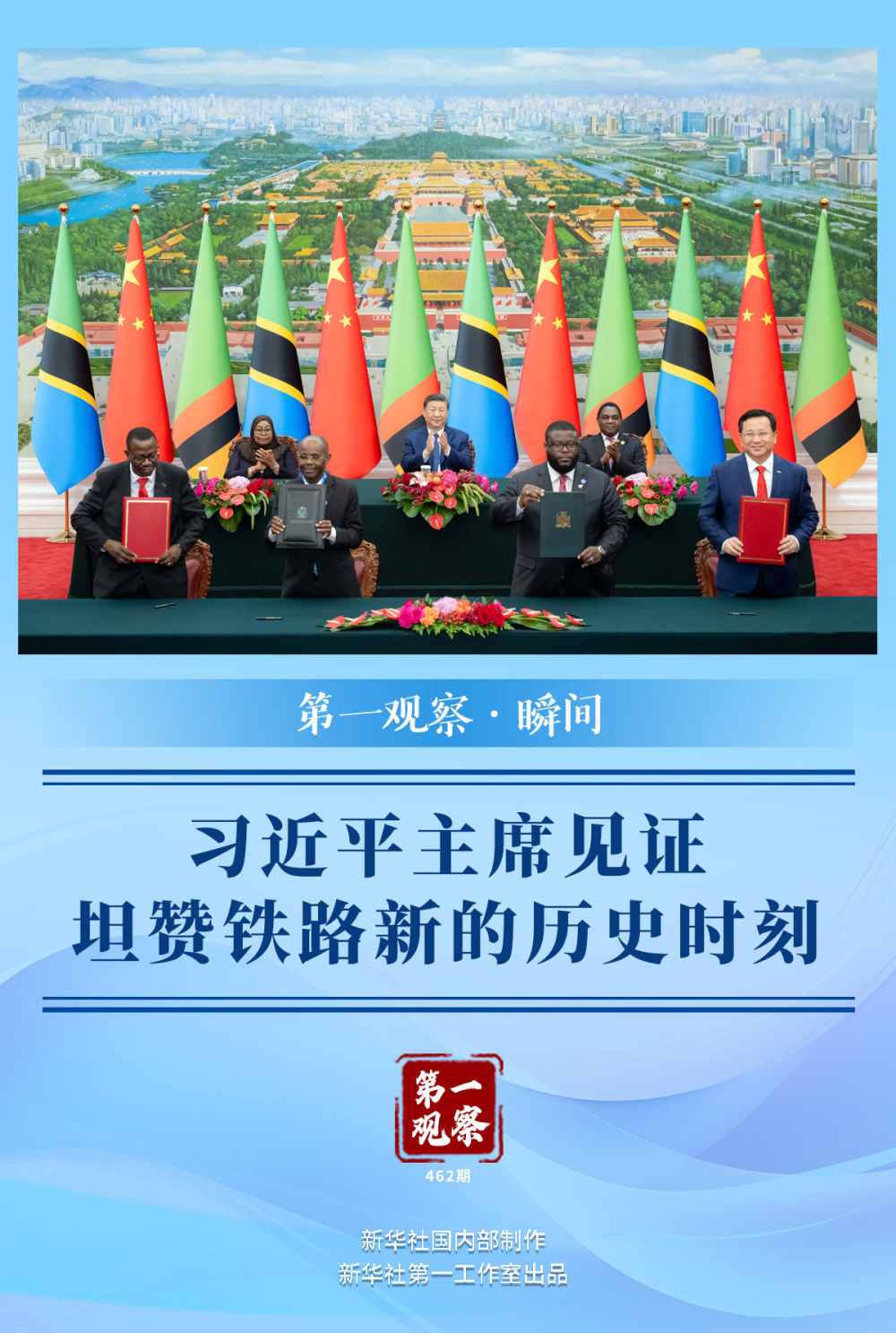 新華社記者用鏡頭記錄下又一歷史時(shí)刻——習(xí)近平主席同來華出席中非合作論壇北京峰會(huì)的坦桑尼亞總統(tǒng)哈桑、贊比亞總統(tǒng)希奇萊馬,在這里共同見證簽署《坦贊鐵路激活項(xiàng)目諒解備忘錄》。簽署完畢,現(xiàn)場(chǎng)熱烈的掌聲經(jīng)久不息。