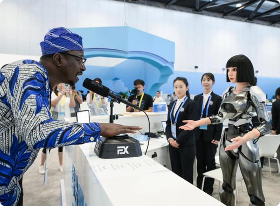 △中國剛剛在世界機(jī)器人大會(huì)上展出的智能語音機(jī)器人也在中非合作論壇上亮相