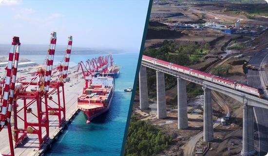 △吉布提港口(左)和聯(lián)通東非的蒙內(nèi)鐵路(右)