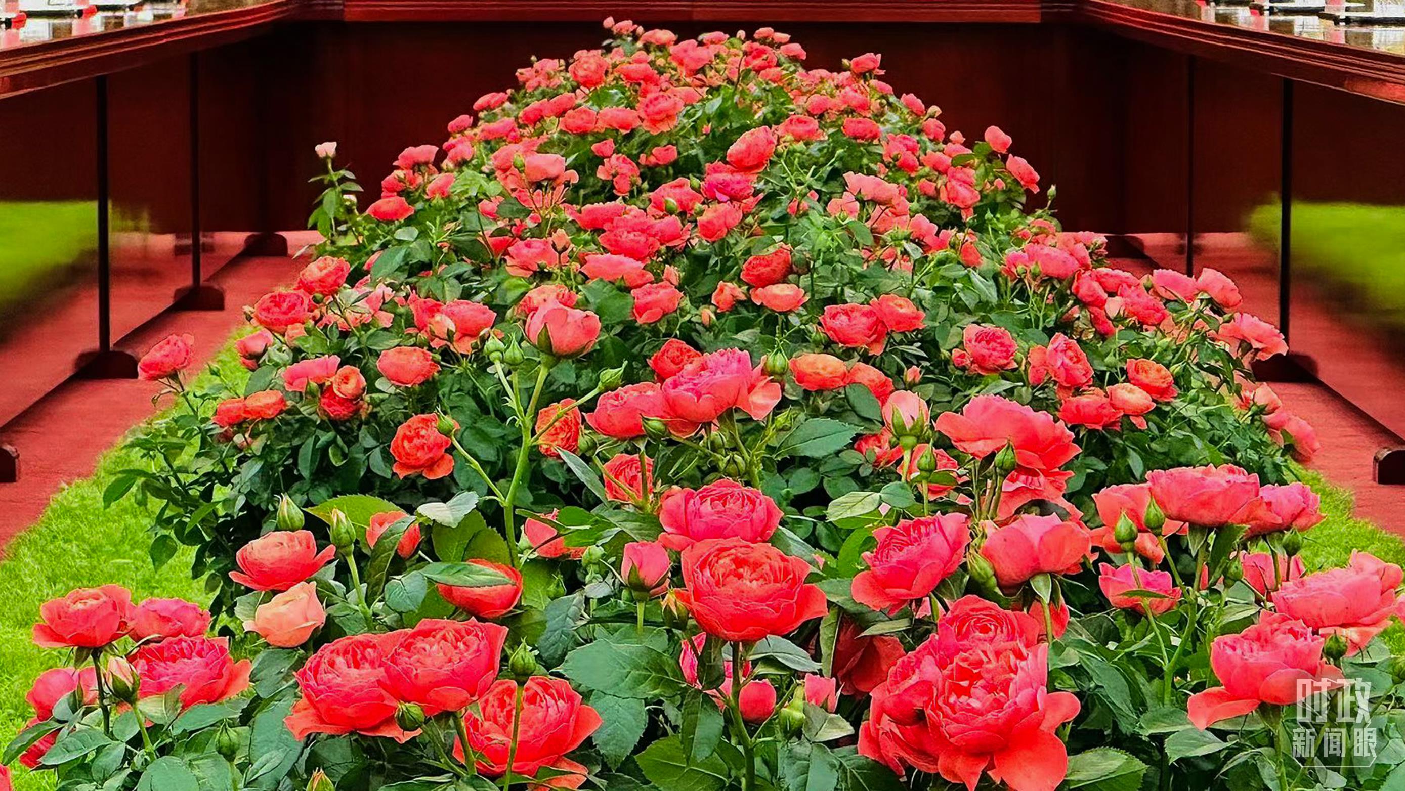 東大廳會談桌中間擺放的紅果汁月季,象征著蓬勃與堅韌。(總臺央視記者范一鳴拍攝)
