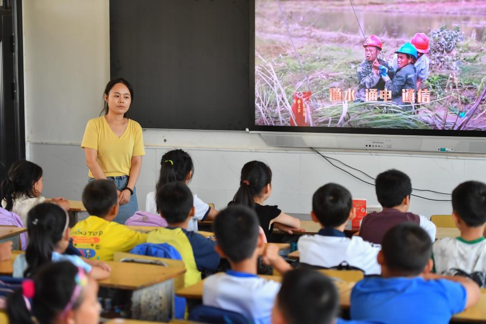 今年夏天,湖南華容縣等地遭受洪澇災害。9月,華容縣一所學校,老師通過講述防災救災故事,引導孩子們知情、共情,汲取成長的力量。