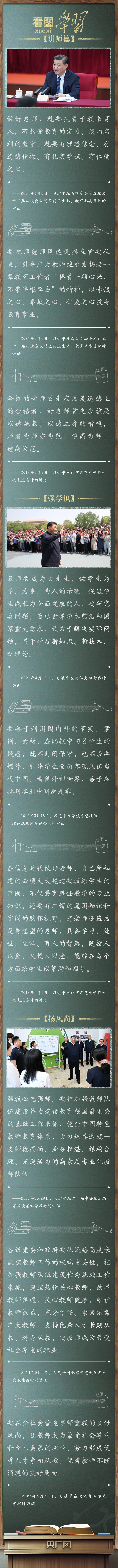 教育大計(jì),教師為本。黨的十八大以來,以習(xí)近平同志為核心的黨中央堅(jiān)持把教育擺在優(yōu)先發(fā)展的戰(zhàn)略位置,推動(dòng)新時(shí)代教育事業(yè)取得歷史性成就、發(fā)生格局性變化。習(xí)近平總書記緊扣“培養(yǎng)什么人、怎樣培養(yǎng)人、為誰培養(yǎng)人”這一教育的根本問題,對建設(shè)新時(shí)代高素質(zhì)專業(yè)化教師隊(duì)伍作出一系列重要指示,激勵(lì)廣大教師立德修身、敬業(yè)立學(xué),強(qiáng)調(diào)要在全黨全社會(huì)弘揚(yáng)尊師重教的社會(huì)風(fēng)尚。在第四十個(gè)教師節(jié)到來之際,讓我們一起牢記并踐行總書記的殷殷囑托!