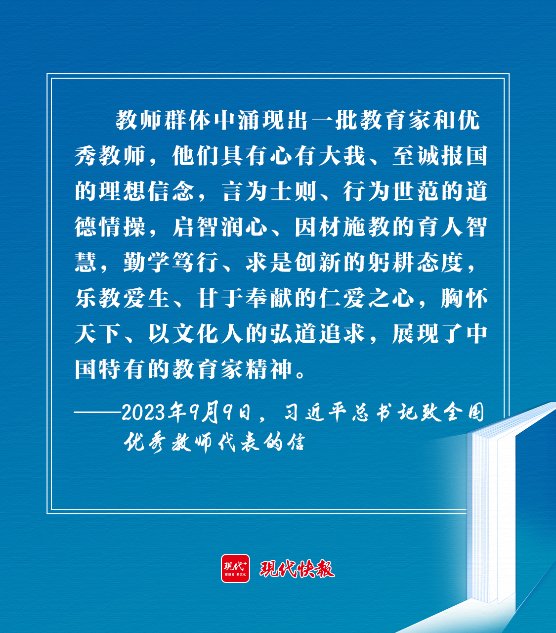 2023年9月9日,習(xí)近平總書記在致全國優(yōu)秀教師代表的信中強調(diào):“新征程上,希望你們和全國廣大教師以教育家為榜樣,大力弘揚教育家精神,牢記為黨育人、為國育才的初心使命,樹立‘躬耕教壇、強國有我’的志向和抱負,自信自強、踔厲奮發(fā),為強國建設(shè)、民族復(fù)興偉業(yè)作出新的更大貢獻?!?/p>