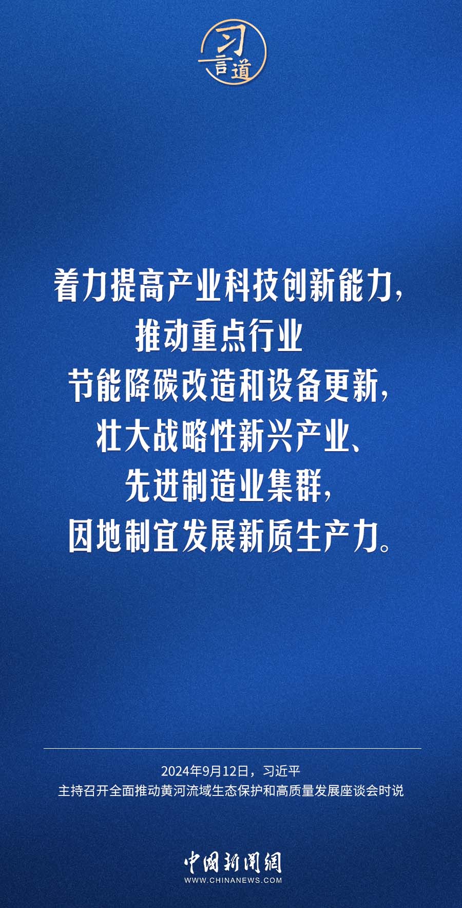 中共中央總書(shū)記、國(guó)家主席、中央軍委主席習(xí)近平12日在甘肅省蘭州市主持召開(kāi)全面推動(dòng)黃河流域生態(tài)保護(hù)和高質(zhì)量發(fā)展座談會(huì)并發(fā)表重要講話。習(xí)近平指出——
