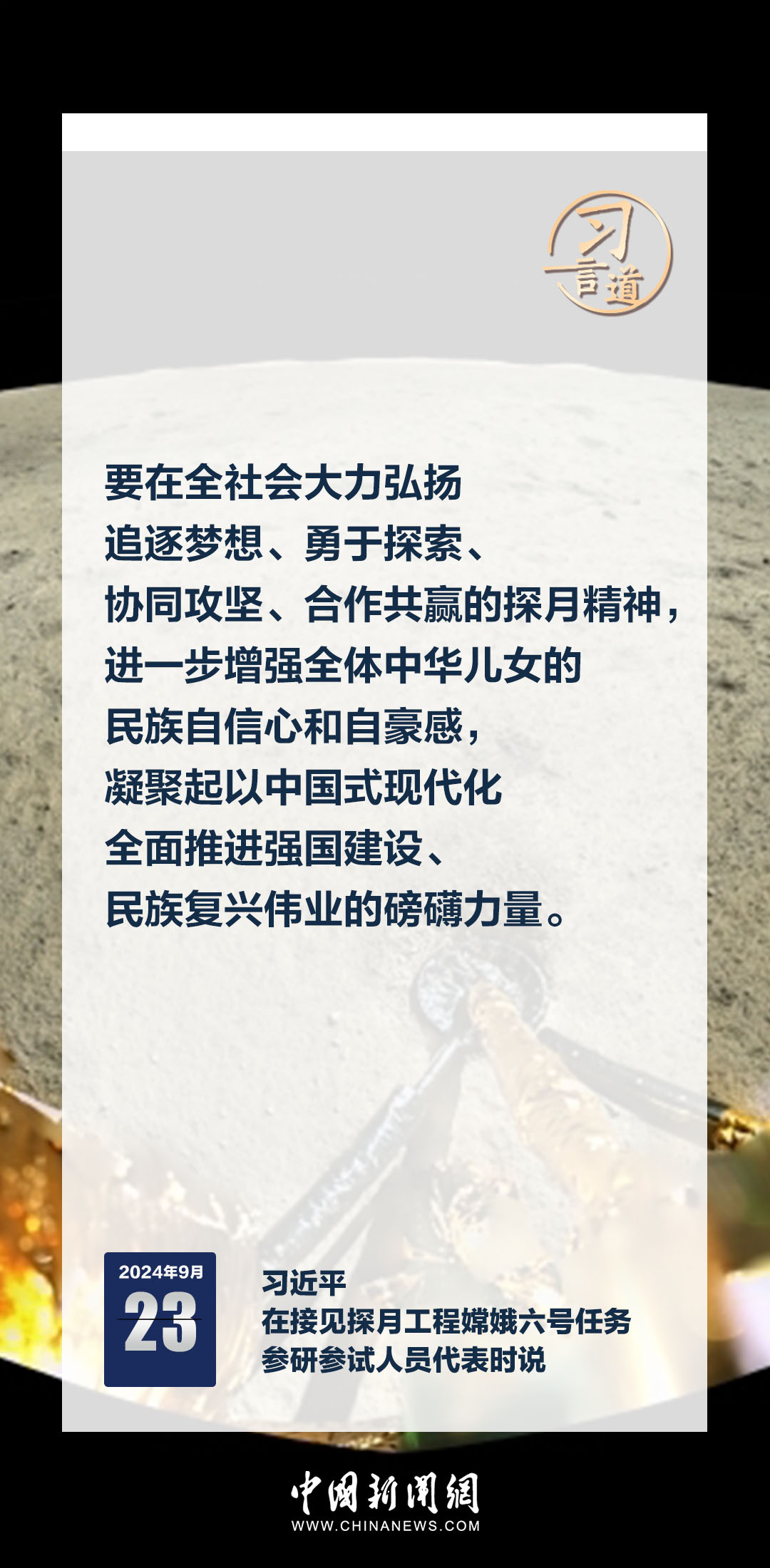 中共中央總書記、國家主席、中央軍委主席習(xí)近平23日在人民大會堂接見探月工程嫦娥六號任務(wù)參研參試人員代表時發(fā)表重要講話。習(xí)近平指出——
