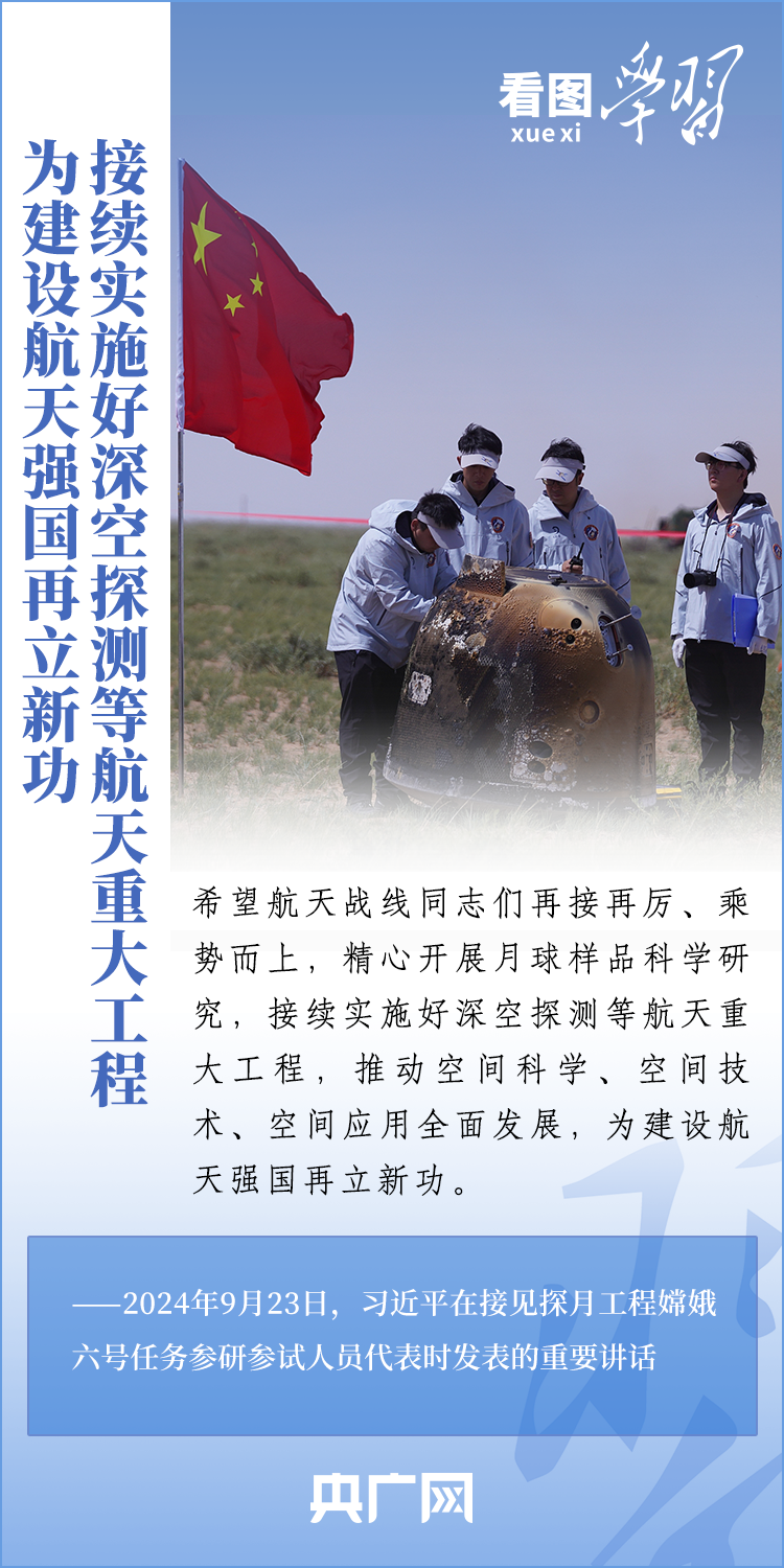 中國探月工程成果凝結(jié)著我國幾代航天人的智慧和心血。9月23日,習近平總書記接見探月工程嫦娥六號任務參研參試人員代表并發(fā)表重要講話??倳浉叨瓤隙ㄦ隙鹆柸蝿粘晒Φ闹匾饬x,以及探月工程為我國航天事業(yè)發(fā)展、為人類探索宇宙空間作出的重大貢獻,勉勵航天戰(zhàn)線工作者再接再厲、乘勢而上,為建設航天強國再立新功。一起來學習!