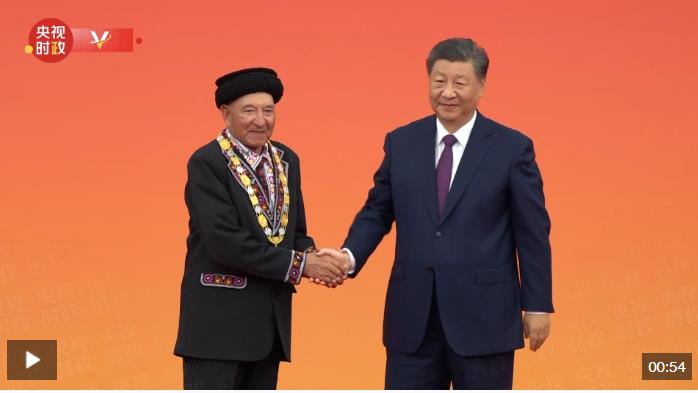 中華人民共和國國家勛章和國家榮譽(yù)稱號頒授儀式9月29日上午10時(shí)在人民大會(huì)堂隆重舉行。中共中央總書記、國家主席、中央軍委主席習(xí)近平向“人民衛(wèi)士”國家榮譽(yù)稱號獲得者巴依卡·凱力迪別克頒授獎(jiǎng)?wù)隆?/p>