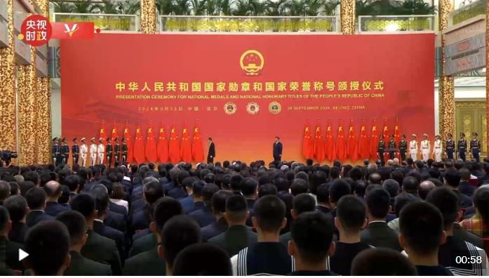 中華人民共和國國家勛章和國家榮譽(yù)稱號頒授儀式9月29日上午10時(shí)在人民大會堂隆重舉行。中共中央總書記、國家主席、中央軍委主席習(xí)近平向“人民教育家”國家榮譽(yù)稱號獲得者張晉藩頒授獎?wù)隆?/p>