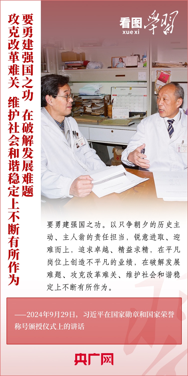 9月29日,中華人民共和國(guó)國(guó)家勛章和國(guó)家榮譽(yù)稱號(hào)頒授儀式在北京舉行,習(xí)近平總書(shū)記向國(guó)家勛章和國(guó)家榮譽(yù)稱號(hào)獲得者頒授勛章獎(jiǎng)?wù)虏l(fā)表重要講話。總書(shū)記強(qiáng)調(diào),全黨全國(guó)各族人民要以英雄模范為榜樣,團(tuán)結(jié)奮進(jìn)、砥礪前行,匯聚起共襄強(qiáng)國(guó)盛舉的磅礴力量。一起來(lái)學(xué)習(xí)!