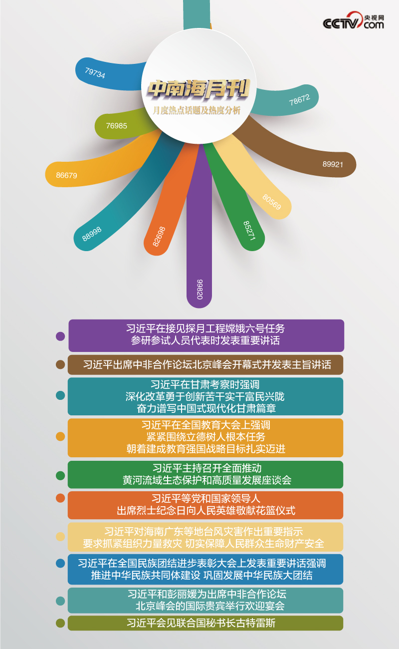 9月,中非深化團結合作、攜手推進現(xiàn)代化“雙向奔赴”,標注下共筑人類命運共同體的“全球南方時刻”。在央視網“智聞”系統(tǒng)提取分析的9月全網時政新聞熱點中,處處體現(xiàn)著匯聚夢想、激蕩信心的生動局面。