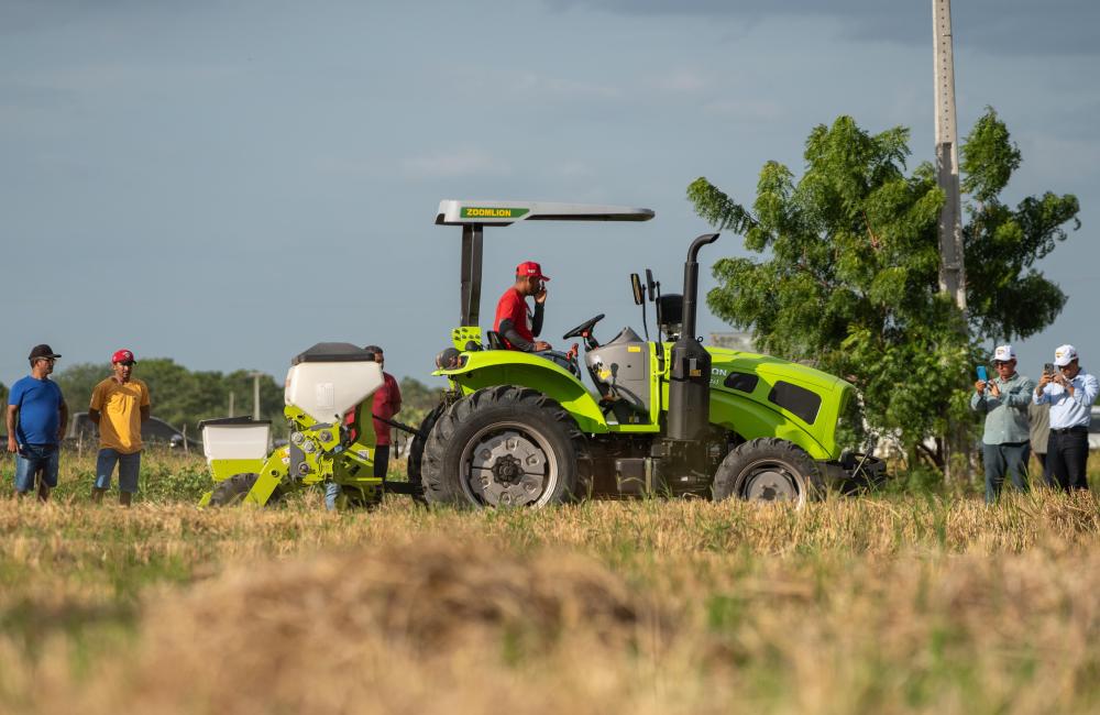 2024年2月2日,在巴西阿波迪的中巴農(nóng)業(yè)機(jī)械化合作示范農(nóng)場(chǎng),一款中國(guó)生產(chǎn)的農(nóng)機(jī)在田間示范作業(yè),吸引了人們觀看。中巴農(nóng)業(yè)機(jī)械化合作示范農(nóng)場(chǎng)旨在助力巴西農(nóng)業(yè)生產(chǎn),促進(jìn)中小農(nóng)戶(hù)減貧和鄉(xiāng)村振興。