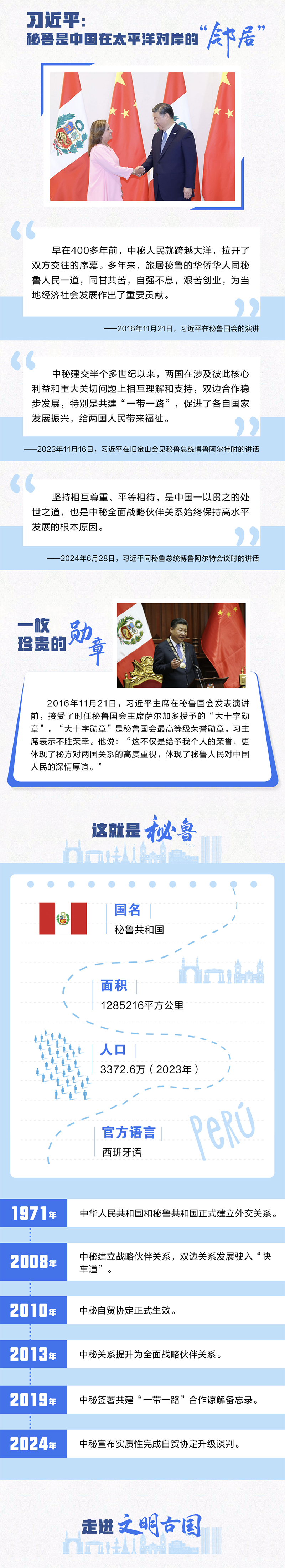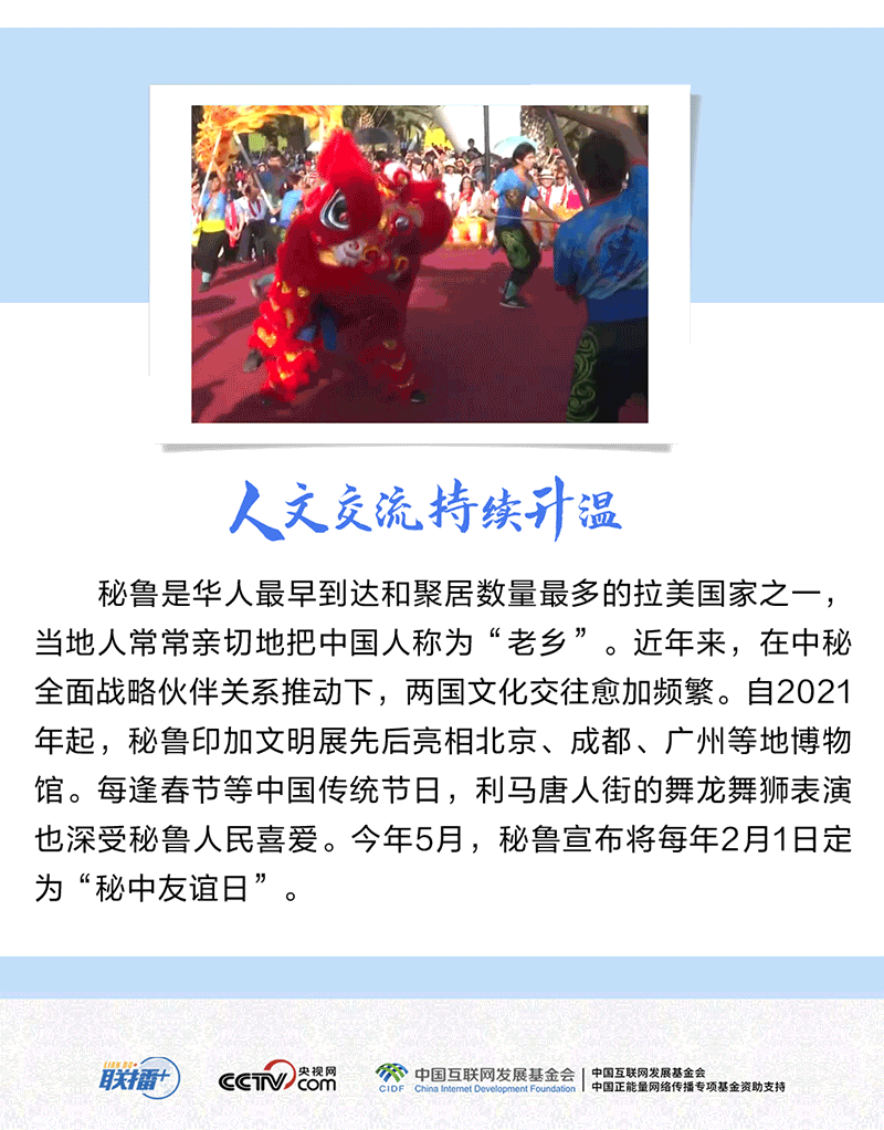 聯(lián)播+應(yīng)秘魯共和國(guó)總統(tǒng)博魯阿爾特邀請(qǐng),習(xí)近平主席將對(duì)秘魯進(jìn)行國(guó)事訪(fǎng)問(wèn)。不到半年的時(shí)間,中秘領(lǐng)導(dǎo)人實(shí)現(xiàn)互訪(fǎng),顯示了雙方高水平的政治互信。