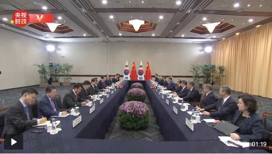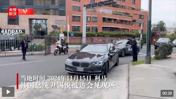 當地時間11月15日,國家主席習近平在利馬出席亞太經合組織領導人非正式會議期間會見韓國總統尹錫悅。