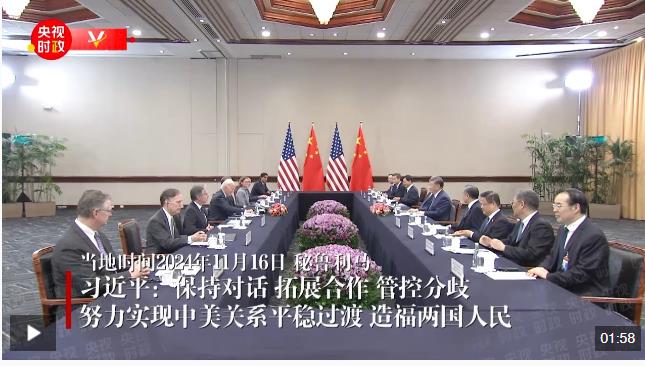 習(xí)近平指出,很高興再次同拜登總統(tǒng)先生見面。過去4年,中美關(guān)系雖然歷經(jīng)跌宕起伏,但在我們兩人領(lǐng)航把舵下,也開展了卓有成效的對話和合作,總體實現(xiàn)了穩(wěn)定。美國剛剛舉行了大選。中方致力于中美關(guān)系穩(wěn)定、健康、可持續(xù)發(fā)展的目標(biāo)沒有變,按照相互尊重、和平共處、合作共贏處理中美關(guān)系的原則沒有變,堅定維護自身主權(quán)、安全、發(fā)展利益的立場沒有變,賡續(xù)中美人民傳統(tǒng)友誼的愿望沒有變。中方愿同美國政府繼續(xù)保持對話、拓展合作、管控分歧,努力實現(xiàn)中美關(guān)系平穩(wěn)過渡,造福兩國人民。