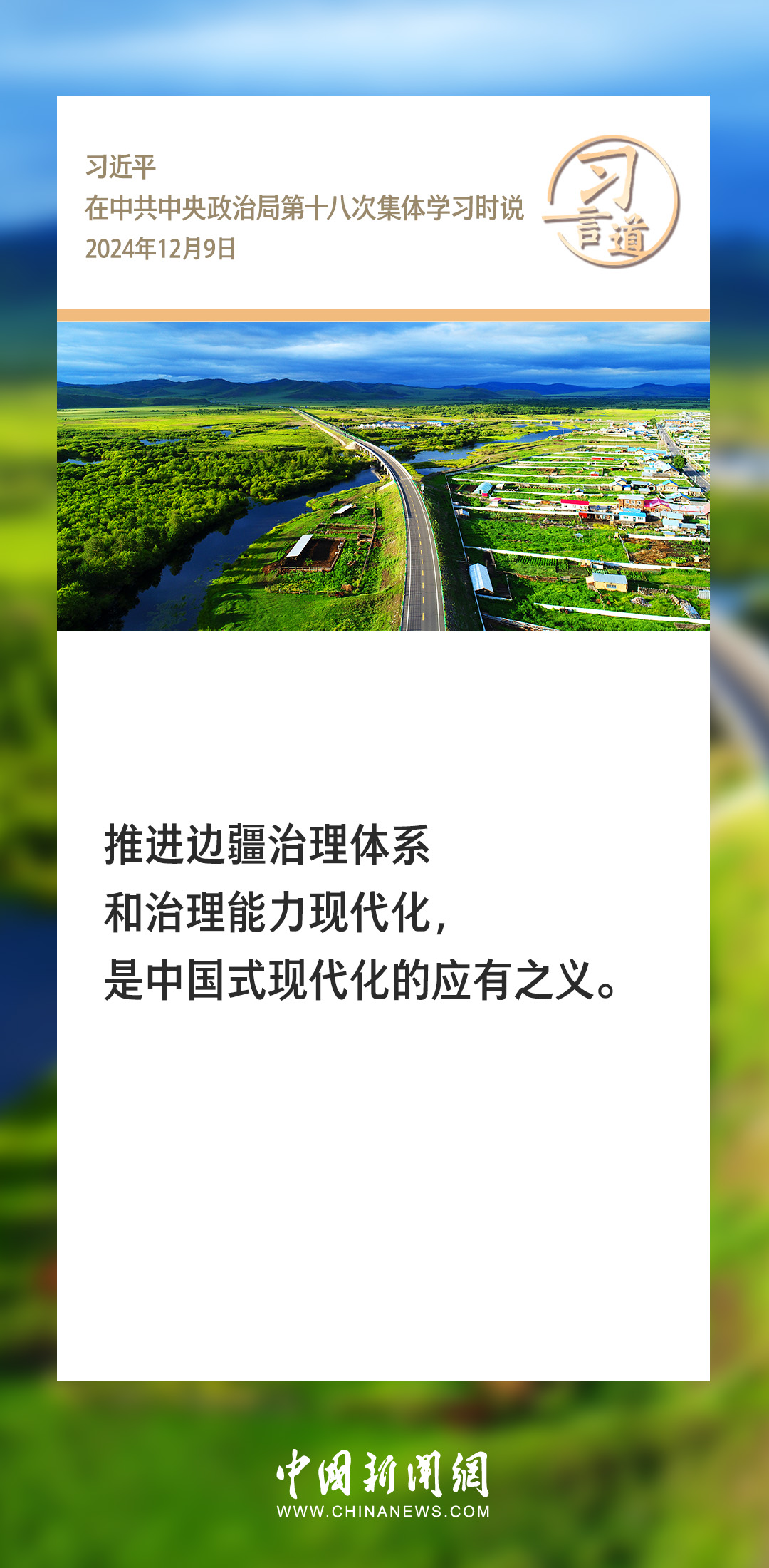 中共中央政治局12月9日就我國歷史上的邊疆治理進行第十八次集體學(xué)習(xí)。中共中央總書記習(xí)近平在主持學(xué)習(xí)時強調(diào)——
