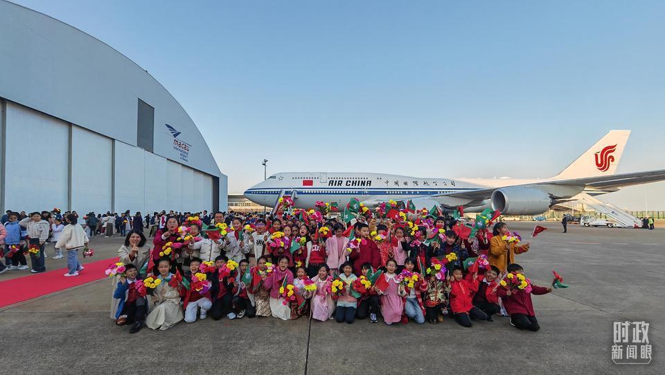 △習主席專機抵達澳門國際機場。(總臺央視記者王子杭拍攝)