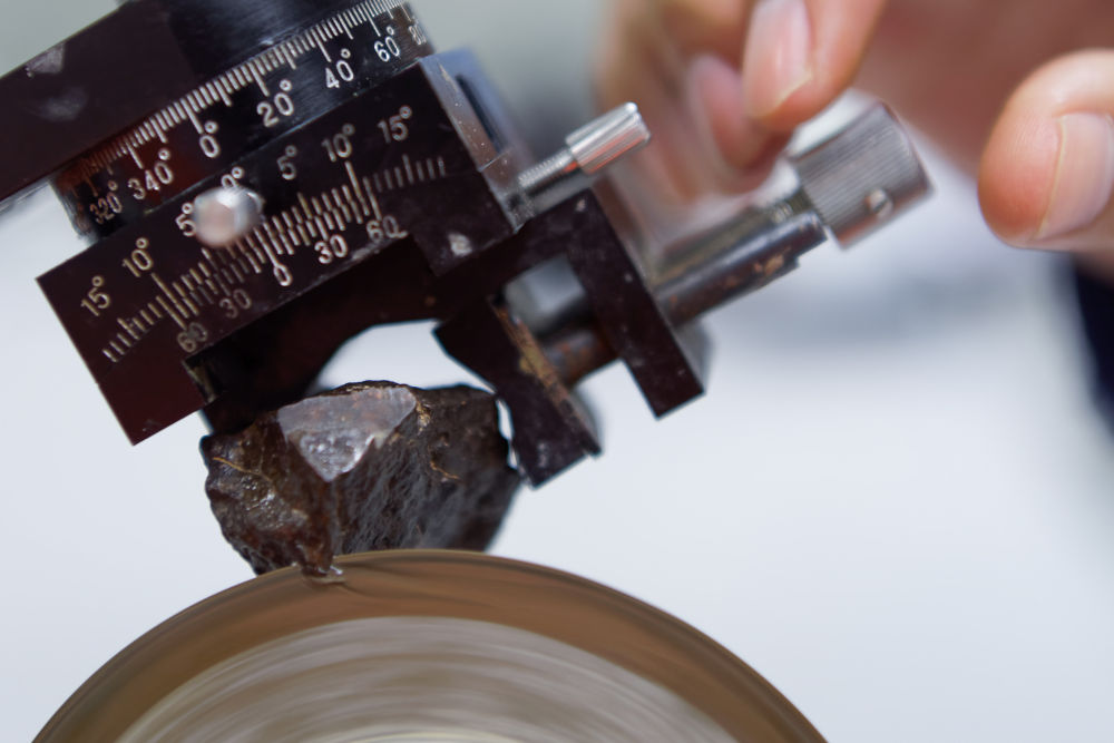 2019年10月31日,學(xué)生在月球與行星科學(xué)國家重點(diǎn)實(shí)驗(yàn)室(澳門科技大學(xué))切割隕石。