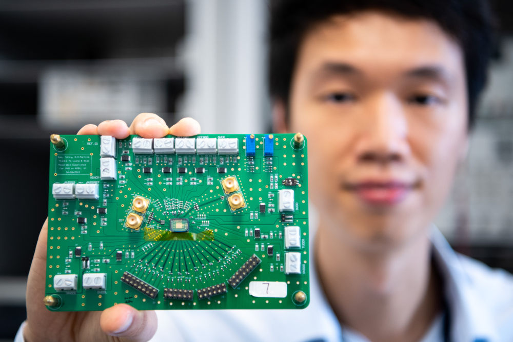 2019年11月1日,研究人員陳知行在模擬與混合信號(hào)超大規(guī)模集成電路國家重點(diǎn)實(shí)驗(yàn)室(澳門大學(xué))展示自主設(shè)計(jì)的模擬數(shù)字轉(zhuǎn)換器芯片。