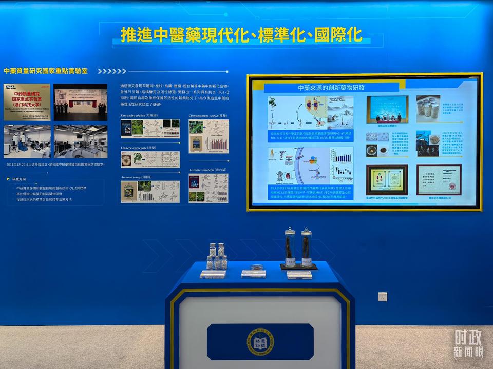 △澳門科技大學(xué)中藥質(zhì)量研究國家重點(diǎn)實(shí)驗(yàn)室、月球與行星科學(xué)國家重點(diǎn)實(shí)驗(yàn)室成果展示。(總臺(tái)央視記者陸泓宇拍攝)