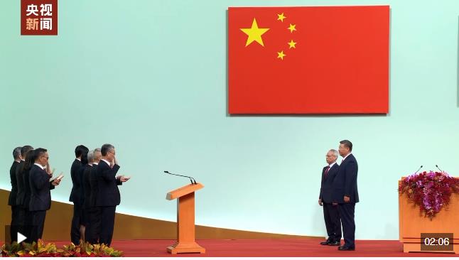 習近平主席監(jiān)誓,澳門特別行政區(qū)第六屆政府主要官員在岑浩輝帶領下宣誓就職。