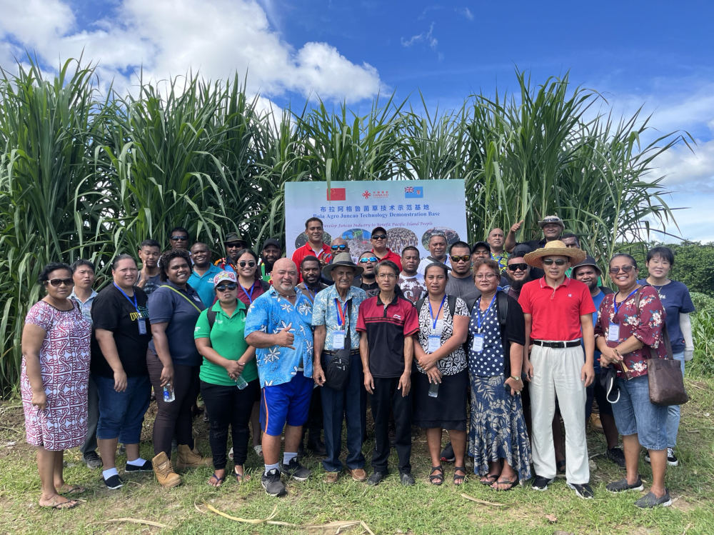 2024年2月28日,來自巴布亞新幾內(nèi)亞、湯加、庫克群島、薩摩亞、瑙魯?shù)葒业摹疤窖髰u國菌草技術(shù)培訓班”學員在斐濟布拉阿格魯菌草技術(shù)示范基地合影。新華社發(fā)(中國援斐濟菌草技術(shù)示范中心供圖)