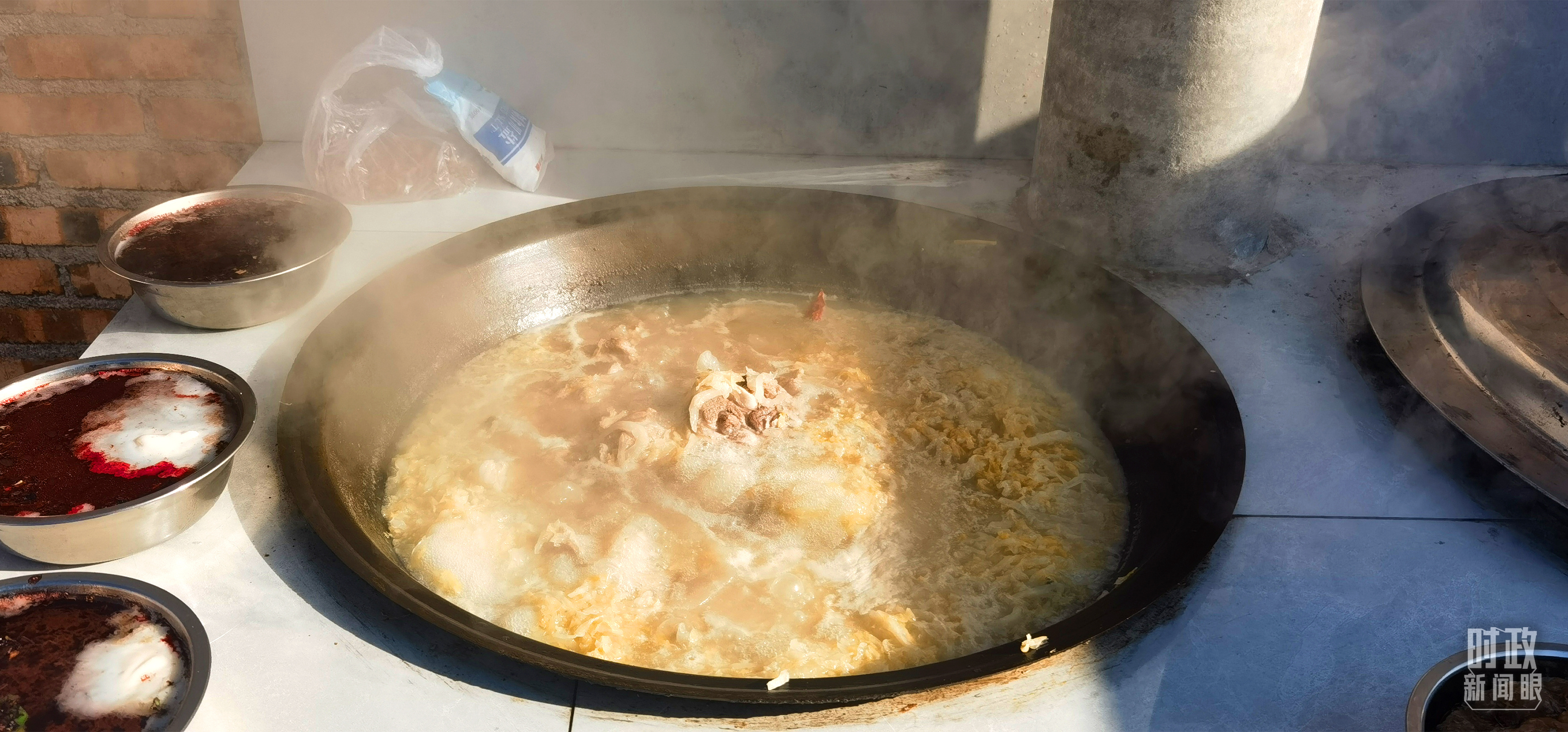 村民王寶維一家,早早為過年做好了準備。院子里的儲物缸裝得滿滿當當,東北特色的殺豬菜熱氣騰騰。農歷小年前,在外務工的大兒子一家也回到家中。一家十口包餃子、蒸豆包,滿是過年的喜慶。