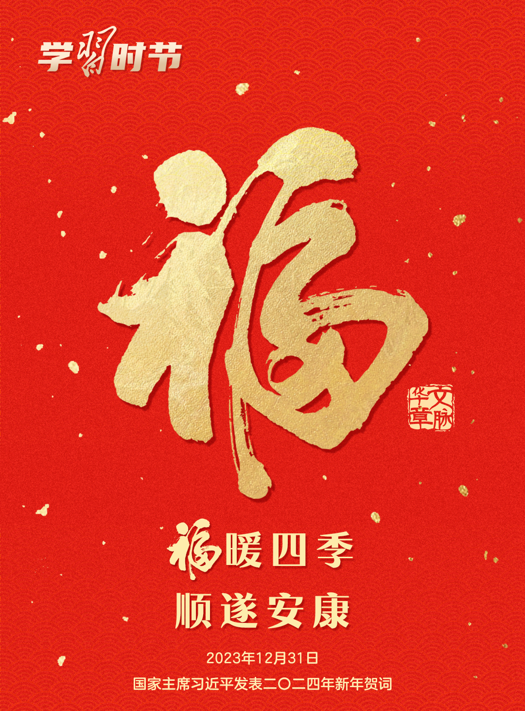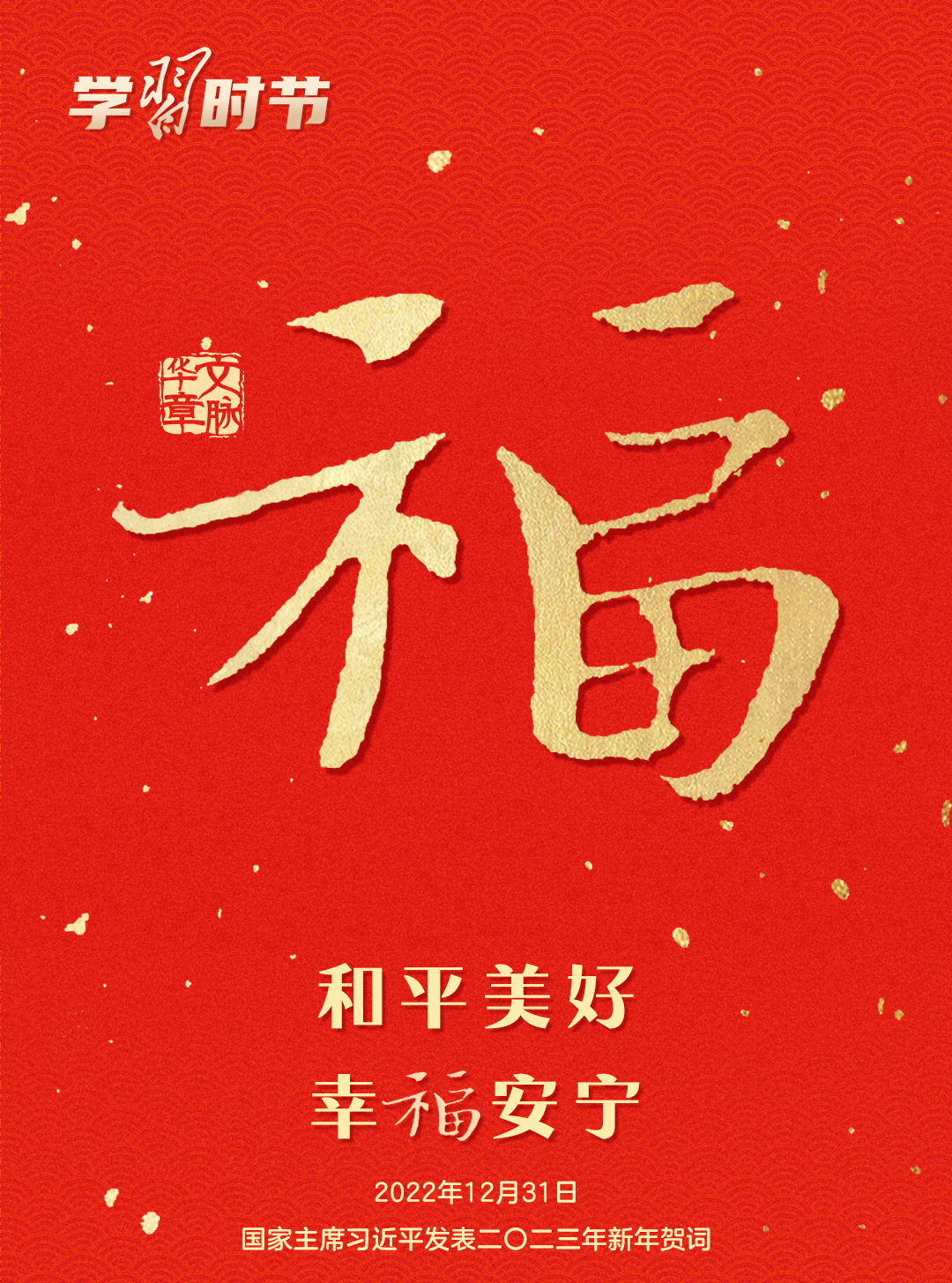五千多年的中華文明,“福”字貫穿其中。它是中華民族的深層文化基因,也是我們心中最吉祥的字眼。一個“?!弊植粌H寄托了人們對幸福生活的祈愿,也承載著對美好未來的不懈追求。每逢新春,習近平總書記都會給大家送上真摯的祝福。聲聲送祝福,句句暖人心。值此乙巳蛇年春節(jié),這份來自總書記的新春祝福,讓我們一起聆聽。