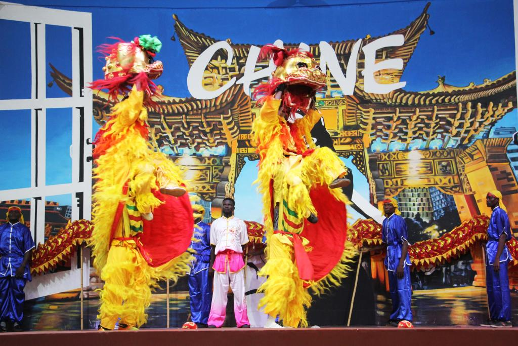 △當(dāng)?shù)貢r(shí)間1月25日,在貝寧科托努的貝寧中國文化中心,演員在表演舞獅慶祝春節(jié)。